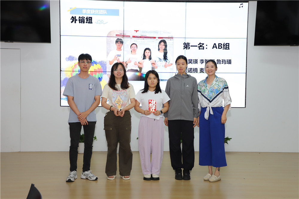 入場活動后,季度會正式開始。第二季度新人的自我介紹后,會議為月度獲優、季度獲優的個人及團體進行頒獎,并由兩位優秀同事帶來工作經驗的分享。第三部分為集團獎項金苗獎的頒獎,表彰在實習期間展現出卓越成長力的實習生。最后是年中晉升提拔表彰,共有5位同事榮獲晉升,在事業部全體熱烈的掌聲中共同見證領導為其頒發聘書,并由其中的優秀代表做了工作分享。